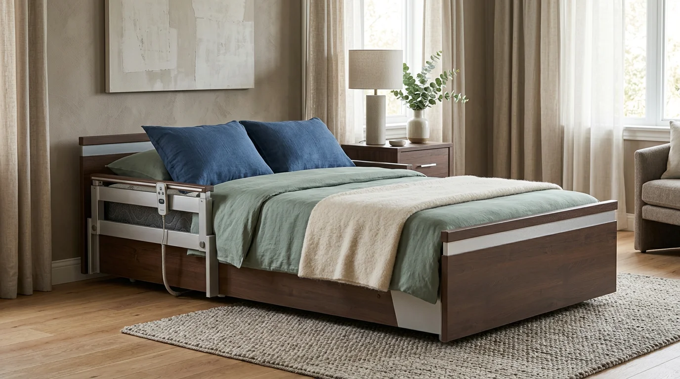 If you need enhanced height adjustment for safer transfers, explore our hi-lo adjustable beds or browse our premium luxury hospital beds for models that blend seamlessly with your home decor.